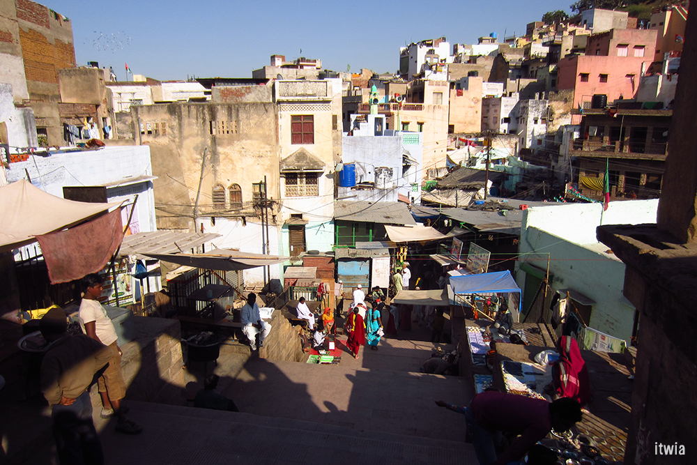 > A faire : se lever très tôt et aller observer les punjas le long des (52) gâths bleues de la cité, ces escaliers sur lesquels il est interdit de marcher chaussé ni de photographier les pèlerins. Il y règne une atmosphère particulière.